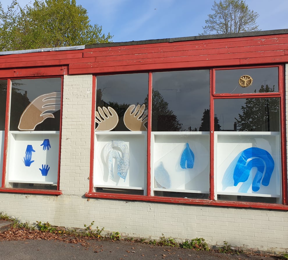 Work in progress - cardboard cut-outs are inspired by ancient Assyrian carvings of winged human figures pollinating palm trees.