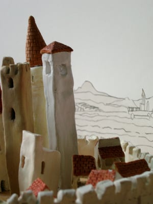Preparatory work inspired by a drawing of a mother, by Giotto, by Lorenzetti's Allegory of Good and Bad Government and the landscape of Tuscany.