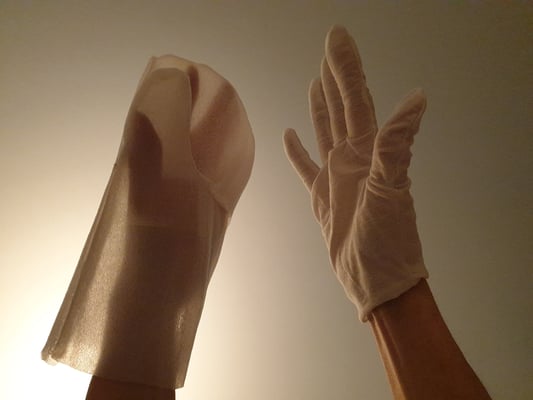 White gloves used for handling objects at the Sainsbury Centre of Visual Arts were my starting point for a work in progress exhibition developed over a few short weeks.